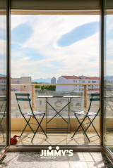 L’espace de vie, de plus de 60 m², baigné de lumière, s’ouvre sur un agréable balcon offrant une vue imprenable sur les collines, sans aucun vis-à-vis. L’agencement est particulièrement soigné, avec une séparation intelligente entre les espaces jour et nuit, garantissant confort et intimité.